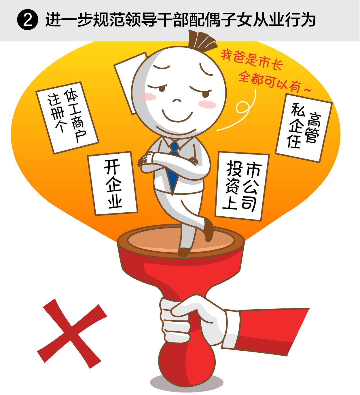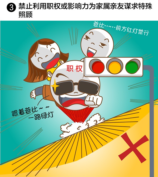 领导干部特别是高级干部必须注重家庭、家教、家风,教育管理好亲属和身边工作人员。严格执行领导干部个人有关事项报告制度,进一步规范领导干部配偶子女从业行为。禁止利用职权或影响力为家属亲友谋求特殊照顾,禁止领导干部家属亲友插手领导干部职权范围内的工作、插手人事安排。各级领导班子和领导干部对来自领导干部家属亲友的违规干预行为要坚决抵制,并将有关情况报告党组织。