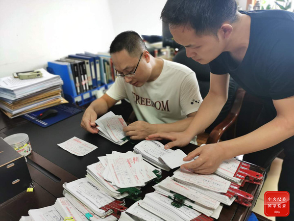 东阳市纪委监委工作人员正在清点核对涉案“烟票”