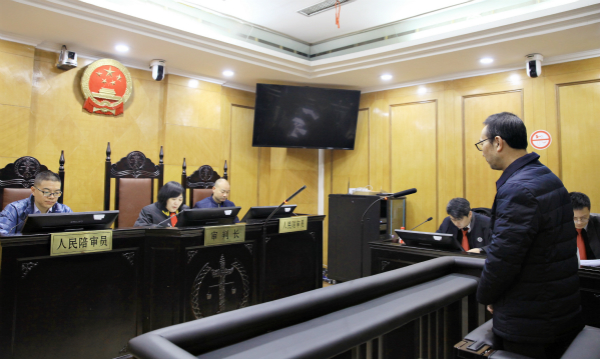 图为2019年12月23日,桐乡市人民法院开庭审理何从华受贿一案。雷思珏 摄