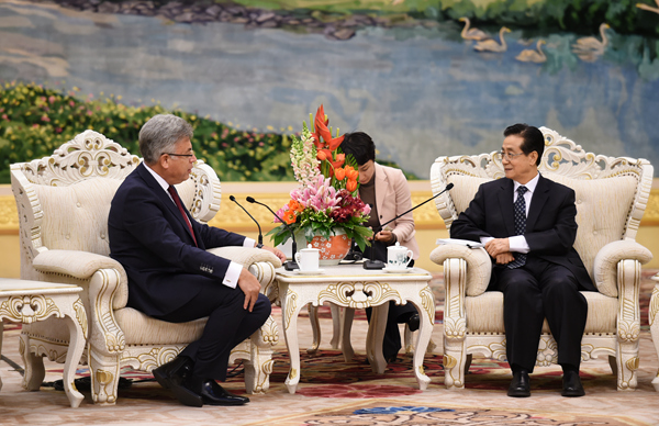 中共中央书记处书记、中央纪委副书记赵洪祝12月13日在人民大会堂会见埃及行政监察署署长埃尔凡。