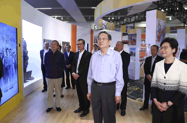 6月26日,中共中央政治局常委、全国政协主席俞正声在国家博物馆参观香港回归祖国20周年成就展。新华社记者谢环驰摄