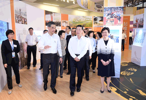 6月26日,中共中央政治局常委、全国人大常委会委员长张德江在国家博物馆参观香港回归祖国20周年成就展。新华社记者李学仁摄