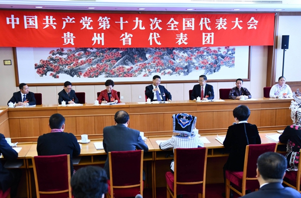10月19日,习近平同志参加党的十九大贵州省代表团讨论。新华社记者 李涛 摄