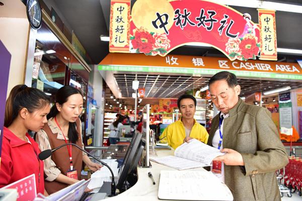 “双节”将至,云南省石林县纪委监委派出3个机动检查组,深入全县各超市、宾馆酒店、娱乐场所、景区、加油站开展明察暗访,查找公款吃喝、公款购买月饼、公款旅游、公车私用等问题线索。(云南省石林县纪委监委 黄俊 摄)