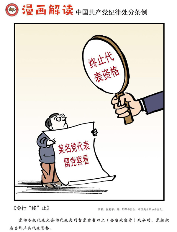 编者按:纪律是我们党的生命线,加强纪律建设是全面从严治党的治本之策。为深入贯彻落实十九届中央纪委四次全会关于加强党纪国法教育的部署要求,强化党规党纪的学习宣传、贯彻执行,使铁的纪律真正转化为党员干部的日常习惯和自觉遵循,中央纪委国家监委网站联合河北省纪委监委,以漫画形式对《中国共产党纪律处分条例》进行解读,陆续连载刊发,敬请关注。