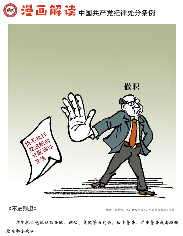 编者按:纪律是我们党的生命线,加强纪律建设是全面从严治党的治本之策。为深入贯彻落实十九届中央纪委四次全会关于加强党纪国法教育的部署要求,强化党规党纪的学习宣传、贯彻执行,使铁的纪律真正转化为党员干部的日常习惯和自觉遵循,中央纪委国家监委网站联合河北省纪委监委,以漫画形式对《中国共产党纪律处分条例》进行解读,陆续连载刊发,敬请关注。