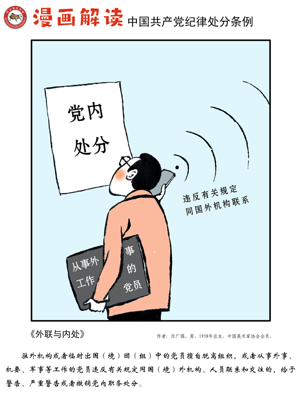 编者按:纪律是我们党的生命线,加强纪律建设是全面从严治党的治本之策。为深入贯彻落实十九届中央纪委四次全会关于加强党纪国法教育的部署要求,强化党规党纪的学习宣传、贯彻执行,使铁的纪律真正转化为党员干部的日常习惯和自觉遵循,中央纪委国家监委网站联合河北省纪委监委,以漫画形式对《中国共产党纪律处分条例》进行解读,陆续连载刊发,敬请关注。