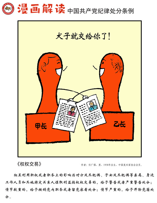 编者按:纪律是我们党的生命线,加强纪律建设是全面从严治党的治本之策。为深入贯彻落实十九届中央纪委四次全会关于加强党纪国法教育的部署要求,强化党规党纪的学习宣传、贯彻执行,使铁的纪律真正转化为党员干部的日常习惯和自觉遵循,中央纪委国家监委网站联合河北省纪委监委,以漫画形式对《中国共产党纪律处分条例》进行解读,陆续连载刊发,敬请关注。
