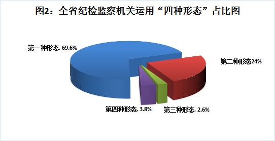 2022年1-6月,全省纪检监察机关运用“四种形态”批评教育帮助和处理共74337人次。其中,运用第一种形态批评教育帮助51738人次,占总人次的69.6%;运用第二种形态处理17851人次,占24%;运用第三种形态处理1948人次,占2.6%;运用第四种形态处理2800人次,占3.8%。