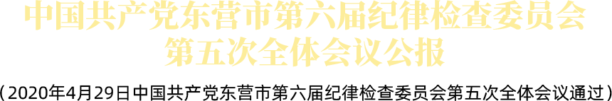 中国共产党东营市第六届纪律检查委员会第五次全体会议,于2020年4月29日举行。